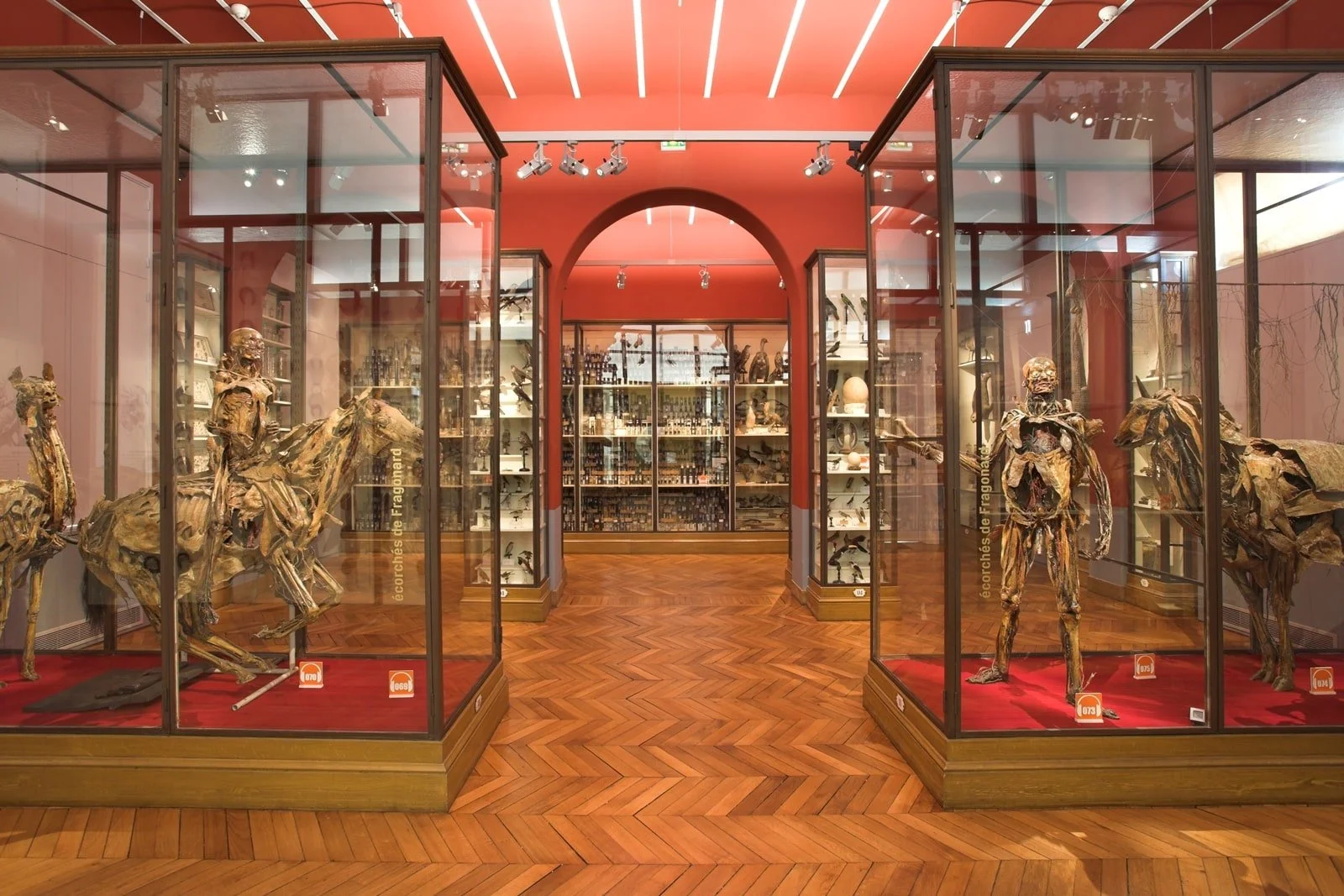At the beginning of veterinary education, anatomy was one of the main subjects, along with botany and farriery. Horses were the species of choice for veterinarians in the 18th century. The study gradually expanded to other domestic species. This led to the emergence of comparative anatomy, a discipline that compares the organs of different species. Most of the exhibits at the Fragonard Museum have been arranged with this educational approach in mind. The museum is organised into three themed rooms. The first is devoted to normal anatomy and teratology, the discipline that studies malformations and monstrosities. The second room displays the skeletons of domestic and wild animals. Finally, the last room contains pathological exhibits, as well as zoology collections and Fragonard's famous écorchés.